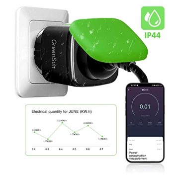 WLAN Steckdose Outdoor GreenSun misst den Stromverbrauch Gartensteckdose Außensteckdose Smart Steckdose Strommessgerät WiFi mit APP Stromzähler Stromverbrauchszähler Wasserdicht